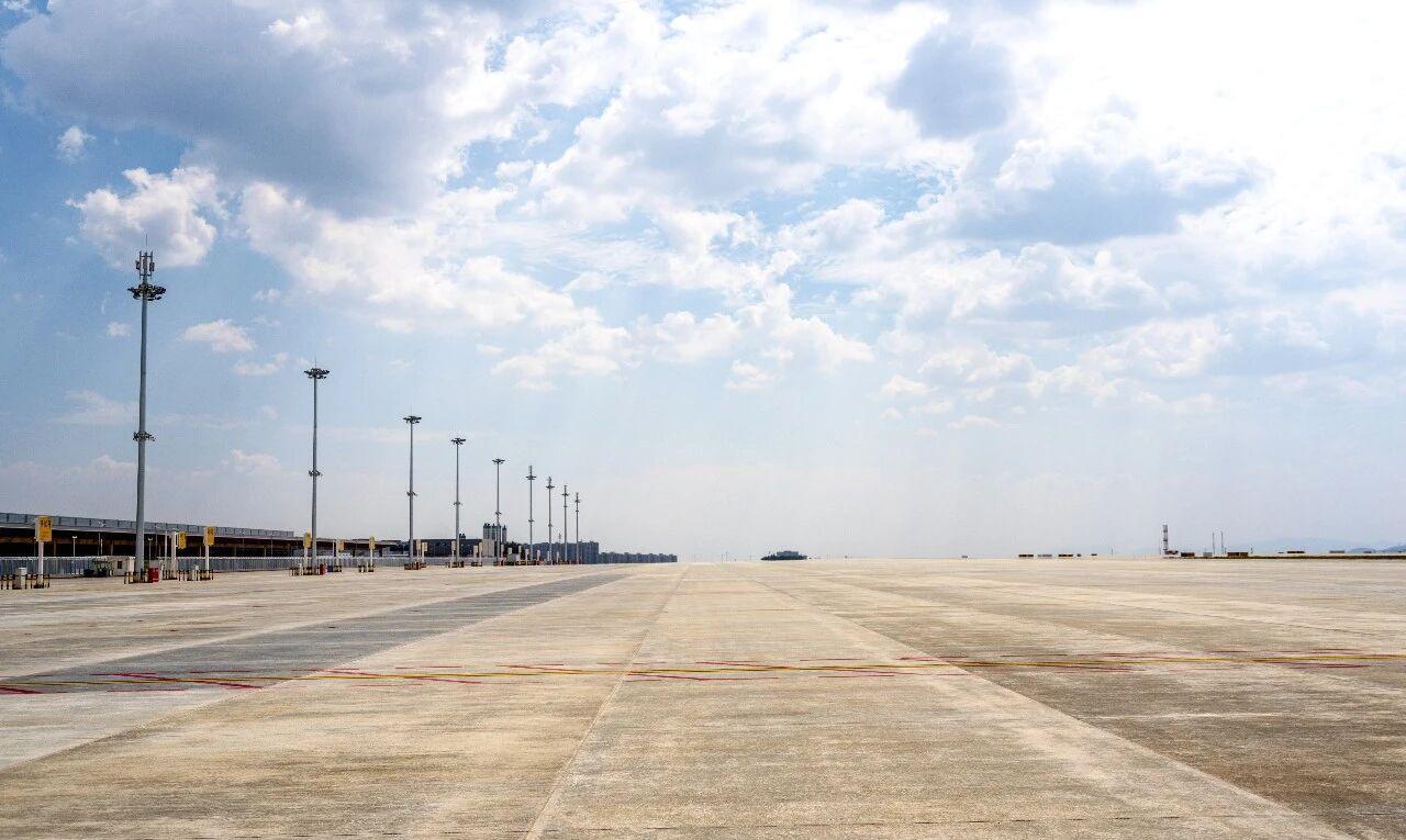 东二跑道为新建4F级跑道,长4000米、宽45米,同步建设平行滑行道、联络道及快速脱离滑行道,并配套助航灯光、导航设备、消防救援通道等系统工程,实现飞行区运行保障能力整体跃升。东货运机坪新建远机位16个,机位类型覆盖C、D、E、F多种机型,并具备灵活转换能力,可有效提升货运保障效率和机位周转能力,为航空物流发展提供有力支撑。