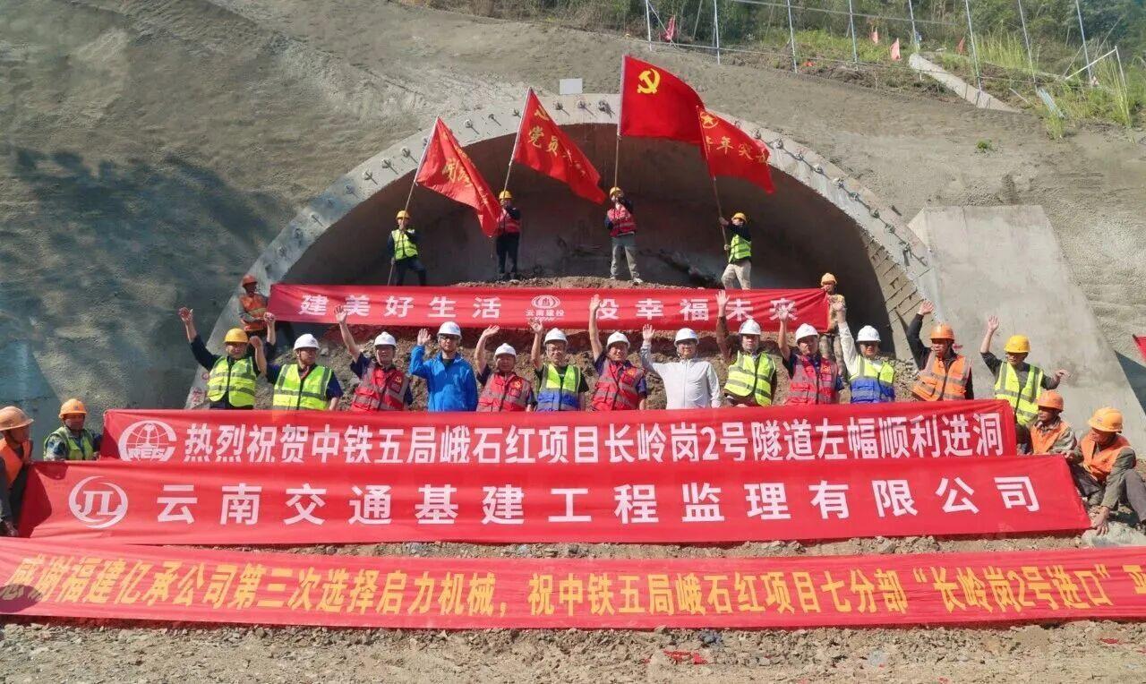 同日,峨石红高速(红河段)长岭岗2号隧道进口左幅顺利进洞施工,继右幅3月16日进洞后,隧道建设再获重要阶段性成果。