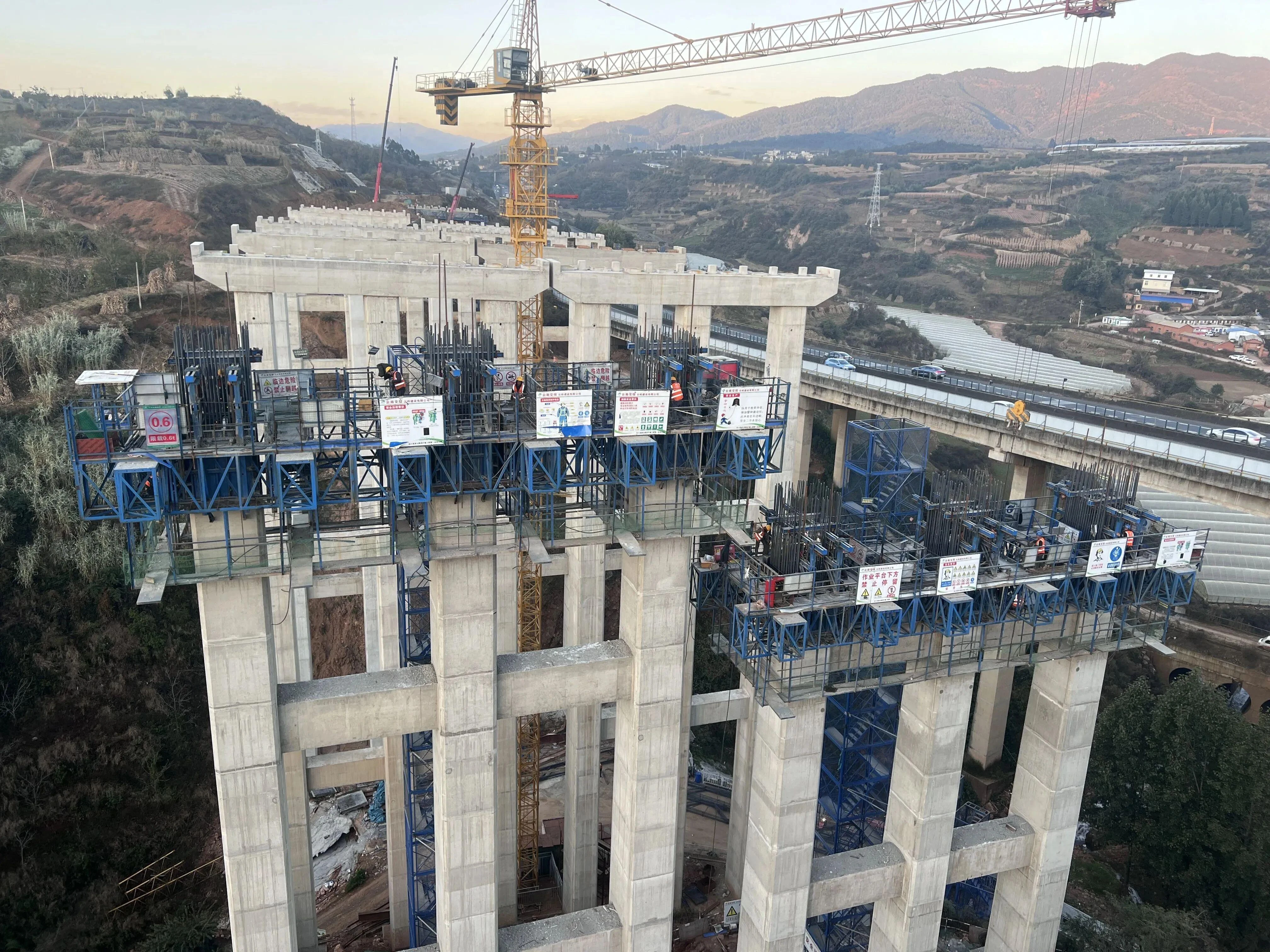 近日,G85银昆高速寻甸(功山)至嵩明(小铺)段改扩建工程三家村大桥主墩顺利实现封顶,全桥墩柱全部完成浇筑作业。