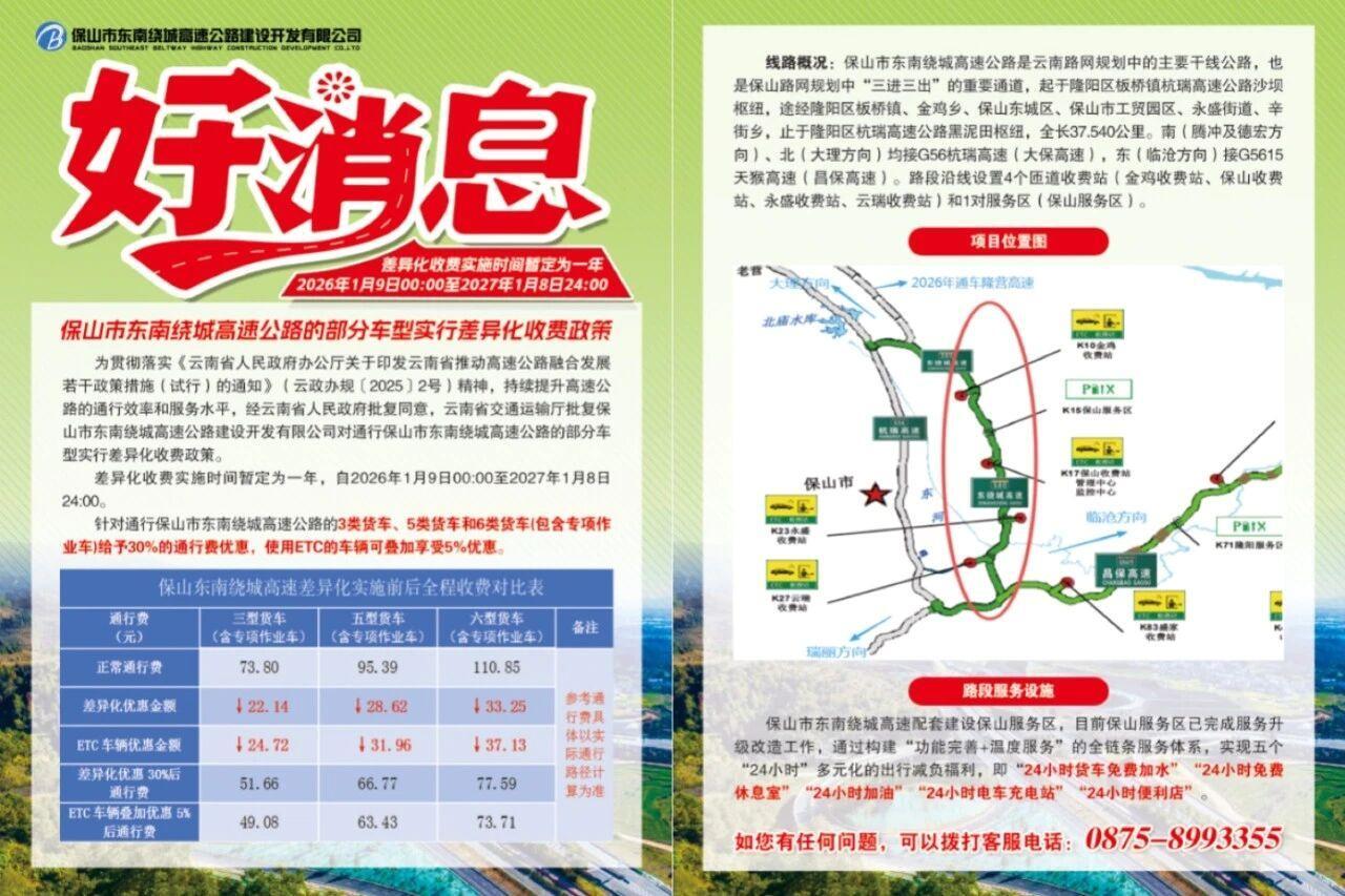 自保山东绕城高速差异化收费政策实施以来,保山运营中心始终锚定“惠民利企、引流增效”核心目标,打出线上线下联动的宣传组合拳,全方位推动政策宣传走深走实。一季度,该路段已累计为2.94万辆货车减免通行费41.59万元,实现路段社会效益与经济效益双提升。