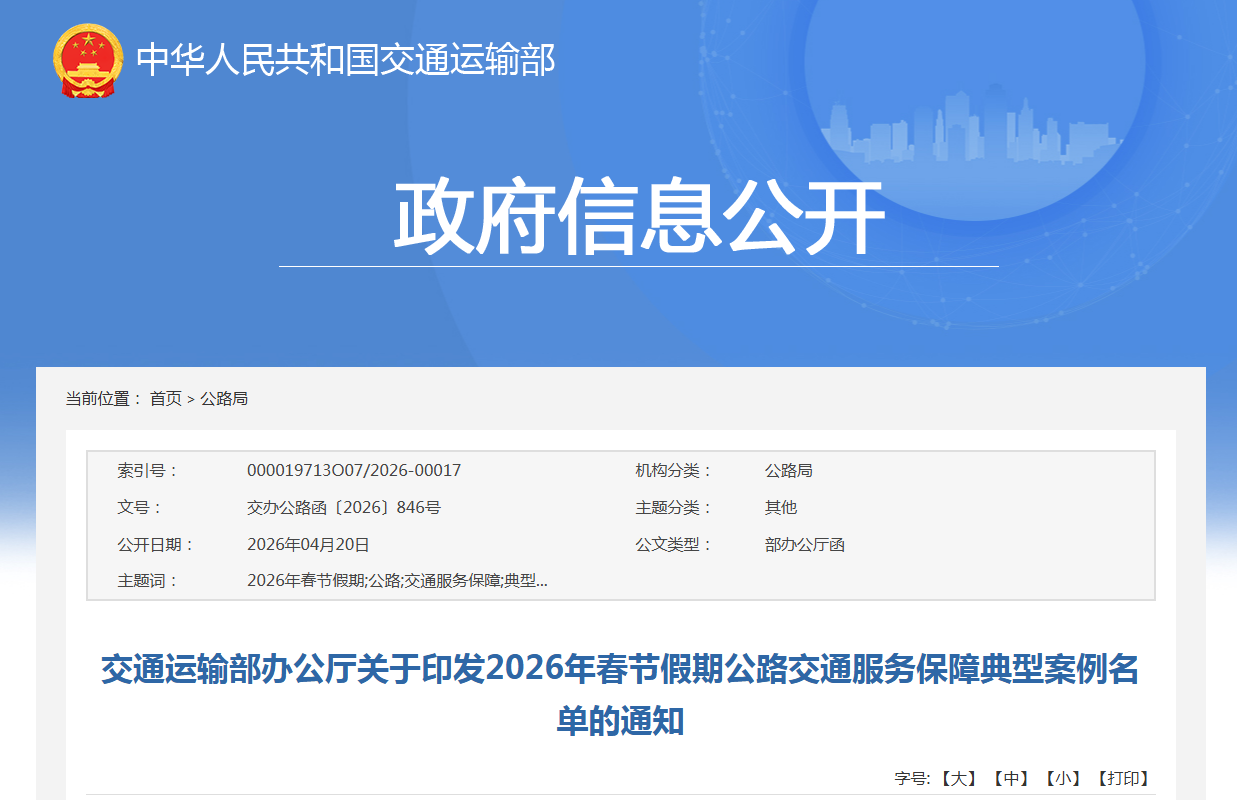 2026年春节假期公路交通服务保障典型案例名单