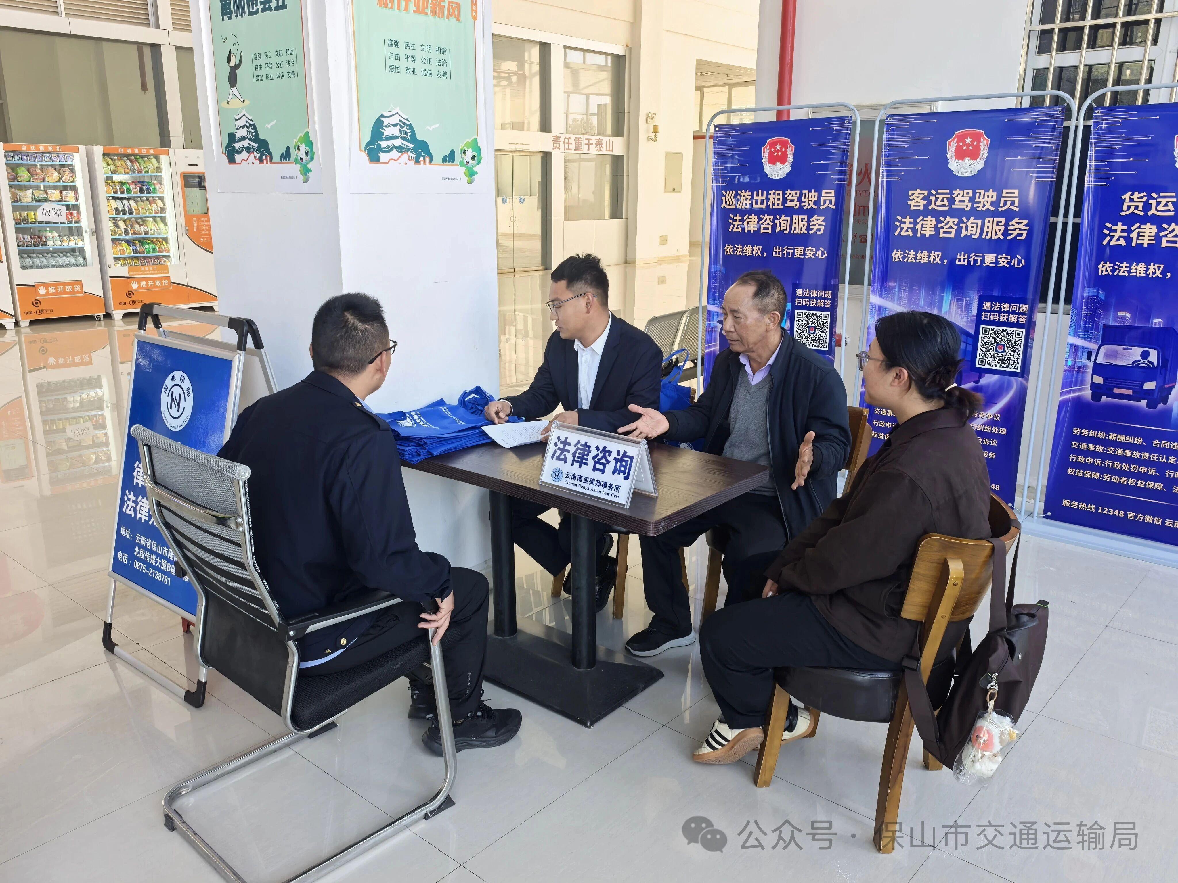 创新驻场模式,推动服务阵地前移。保山市交通运输局联合市司法局在保山客运北站正式启动“法律护航,司机无忧”专项行动。依托建成投用的“司机小站”服务阵地,创新推出“专业律师每月定时驻场”服务模式,安排执业律师现场坐班,提供法律咨询、法治宣传、纠纷调解、法律援助指引等一站式公益法律服务。同时,开通线上咨询通道,司机可通过12328交通运输服务热线、“保山市交通运输局”微信公众号留言等方式进行咨询,实现线上线下互补联动。行动启动当天,共为司机群体提供法律咨询80余次,成功调解矛盾纠纷2起,提供法律援助指引1次,开展普法宣传覆盖120人次,现场司机普遍反响良好,称赞“服务送到了心坎上”。